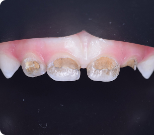 сильно разрушенные молочные зубы до